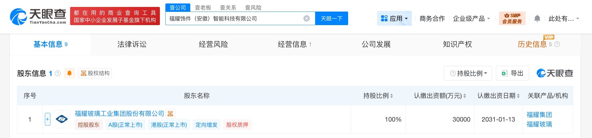 福耀玻璃在安徽成立饰件智能科技公司 注册资本3亿观点
