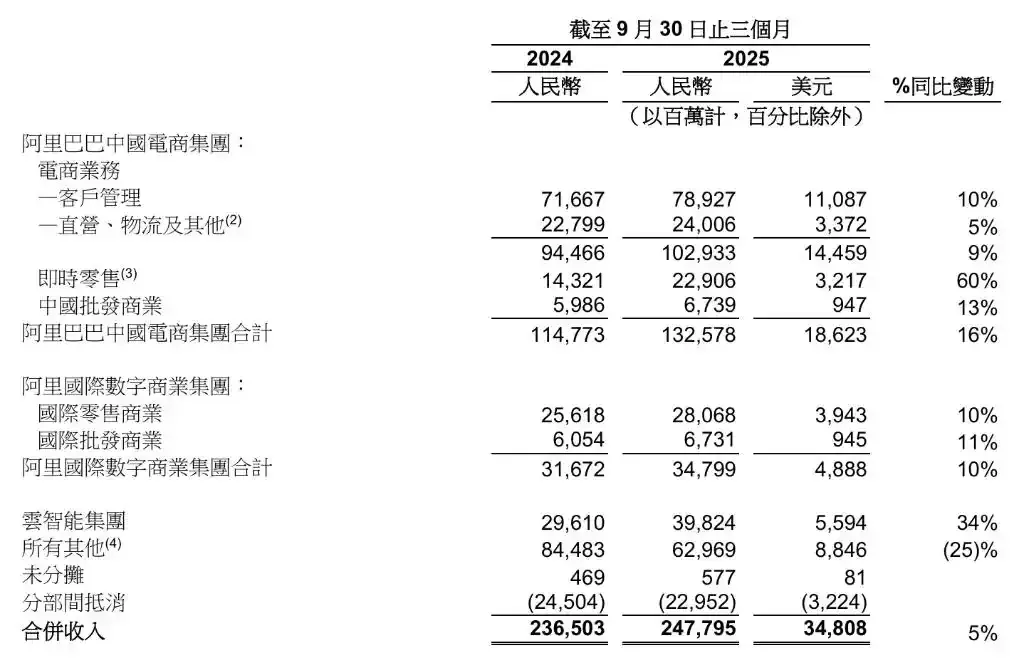 阿里巴巴中国电商集团本季度表现稳健,为集团的技术投入与国际化扩张提供了坚实的现金流支撑。