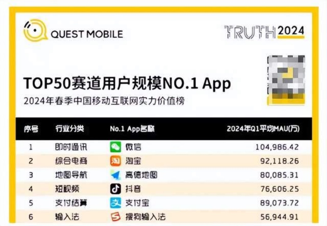 QuestMobile2024年6月报告显示,其月活跃用户数已超8亿,在国内移动互联网应用中排名第四,仅次于微信、淘宝和支付宝。