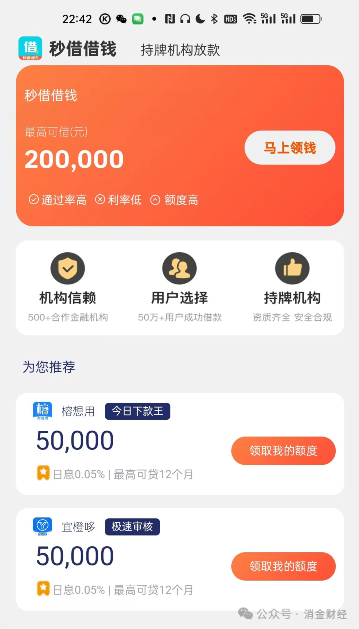 3.海南皓优科技有限公司(备用金信用贷和来钱包分期)站内引流非法贷中贷产品:掌上速贷,掌上速贷是一款没有金融资质,给超过年化300%的高利贷引流的贷款聚合平台。