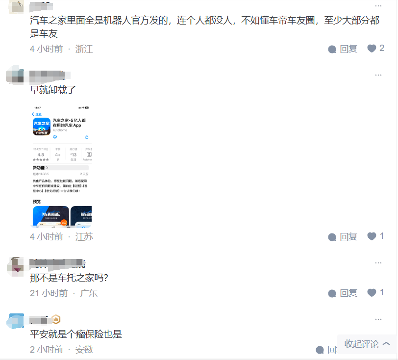 此前的汽车之家,以当时盛行的社区论坛和图文游记赢得了一批活跃用户及忠实粉丝。然而,平安接手后操之过急的商业化,导致用户体验急剧下降,汽车之家很快便被曾经的忠诚用户称为“车托之家”。