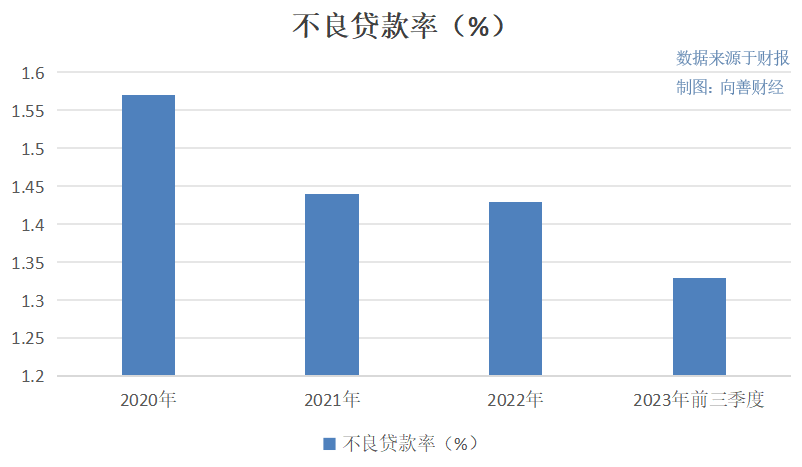 其中,北京银行的不良贷款率从2020年到现在一直都保持着下滑态势,分别为1.57%、1.44%、1.43%和1.33%,对风险把控的能力在不断提高。