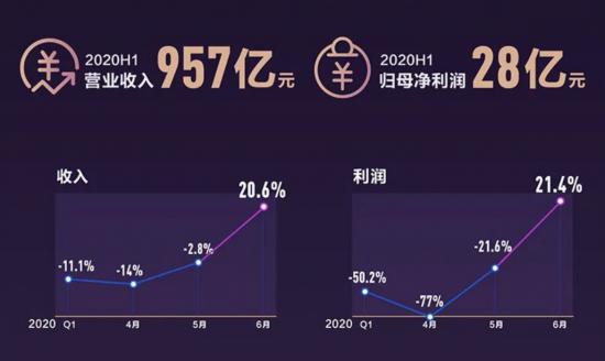8月28日晚,海尔智家披露了2020上半年财务报告。上半年,海尔智家营收957.3亿元,归母净利润27.8亿元。虽然海尔智家上半年业绩增速受到疫情影响同比下跌了4.29%,但是二季度增速迅速回暖,6月收入和归母净利润同比增速分别达到20.6%和21.4%,迎来业绩拐点。
