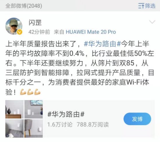 好的产品质量,自然会受到消费者们的一致青睐。从华为消费者BG IoT产品线智能家庭总经理公布的上半年质量报告来看,华为路由器的平均故障率不到0.4%,比行业最佳甚至还要低50%左右。而这则要归功于华为在武汉光谷所建立的规模庞大的Wi-Fi能力中心,这里的Wi-Fi测试实验室可以说是目前全球路由器领域最严格的测试环境。
