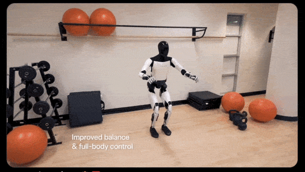 平衡性上,擎天柱二代已经能做一个完全 90 °的深蹲,标准程度堪比健身教练。