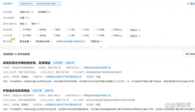 企查查数据显示,马守伟在华熙生物与其他人员参与申请19项专利,其中2个发明专利通过实质审查,17个发明专利在审查中。在2022年报中,华熙生物介绍马守伟时,称“共参与申请研发专利数十项。其中,授权专利5项,开发现象级产品一例”。而“现象级产品”在2022年报中,只提过一次。