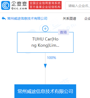 企查查股权穿透显示,该公司由途虎养车网关联公司TUHU Car(Hong Kong)Limited全资控股。