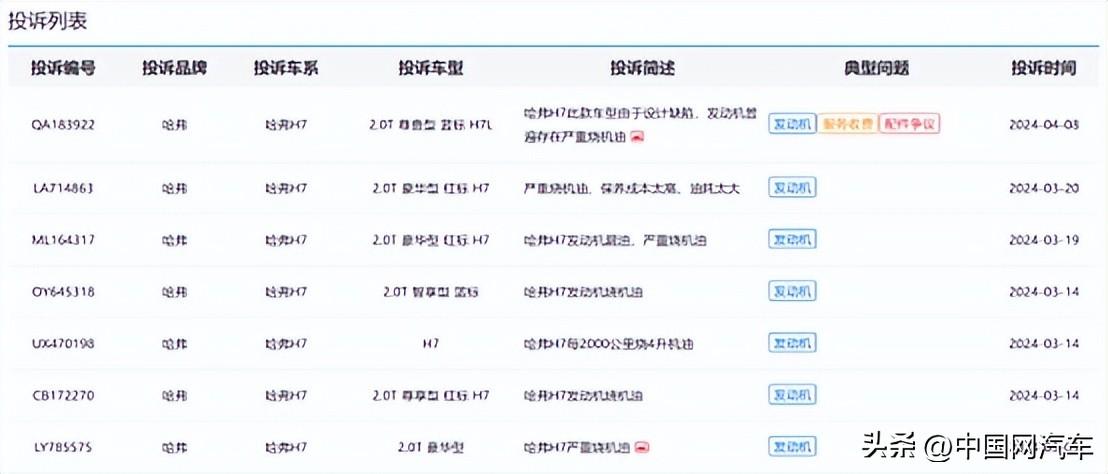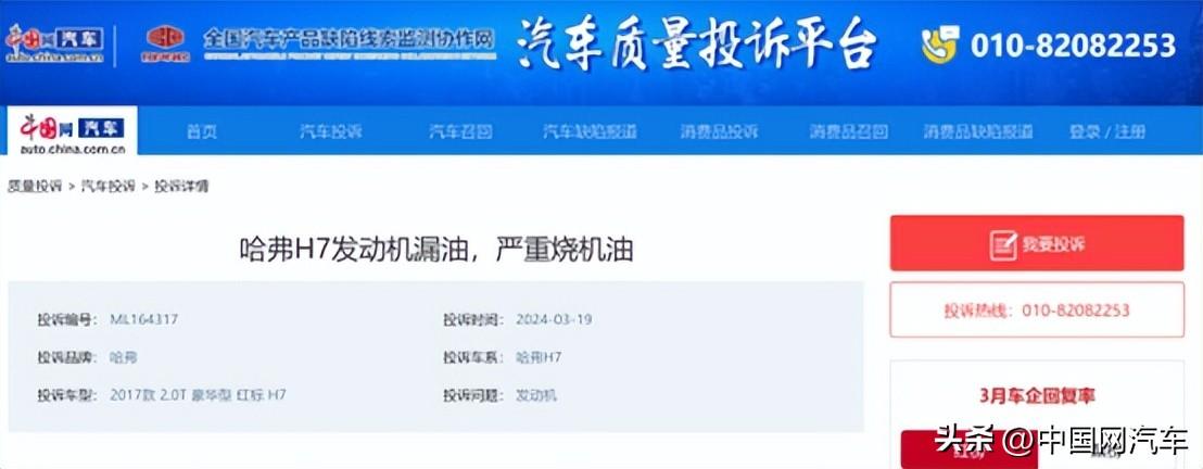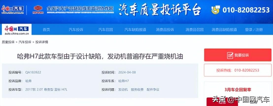 但目前依然有一大批哈弗H7车主通过中国网汽车投诉平台(https://315.auto.china.com.cn/)投诉该车问题。