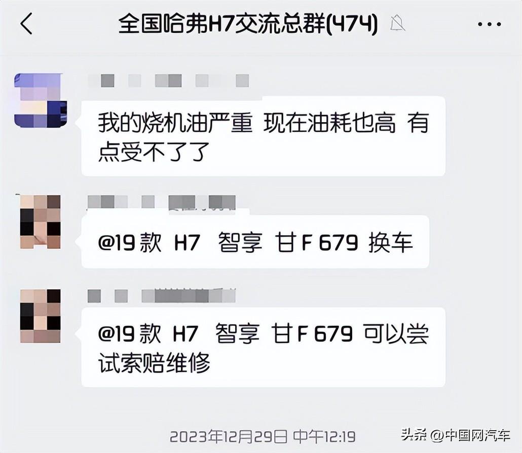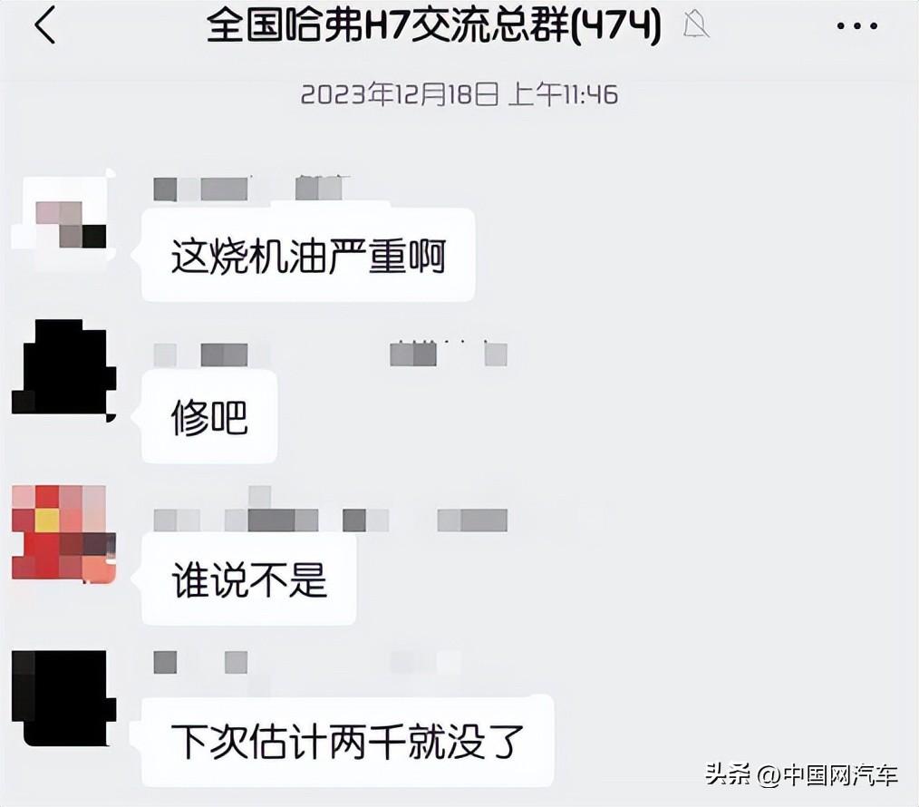 文先生表示,他所在的哈弗H7全国车友群有很多人反映哈弗H7存在烧机油问题,且均认为与发动机本身设计问题有很大关系。