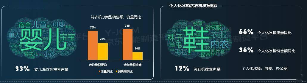 近一年超薄冰箱发展潜力大,流量同比增长151%,销售额同比增长81%。此外,全屋互联一体化冰箱和洗衣机的流量同比增长分别为105%和85%。