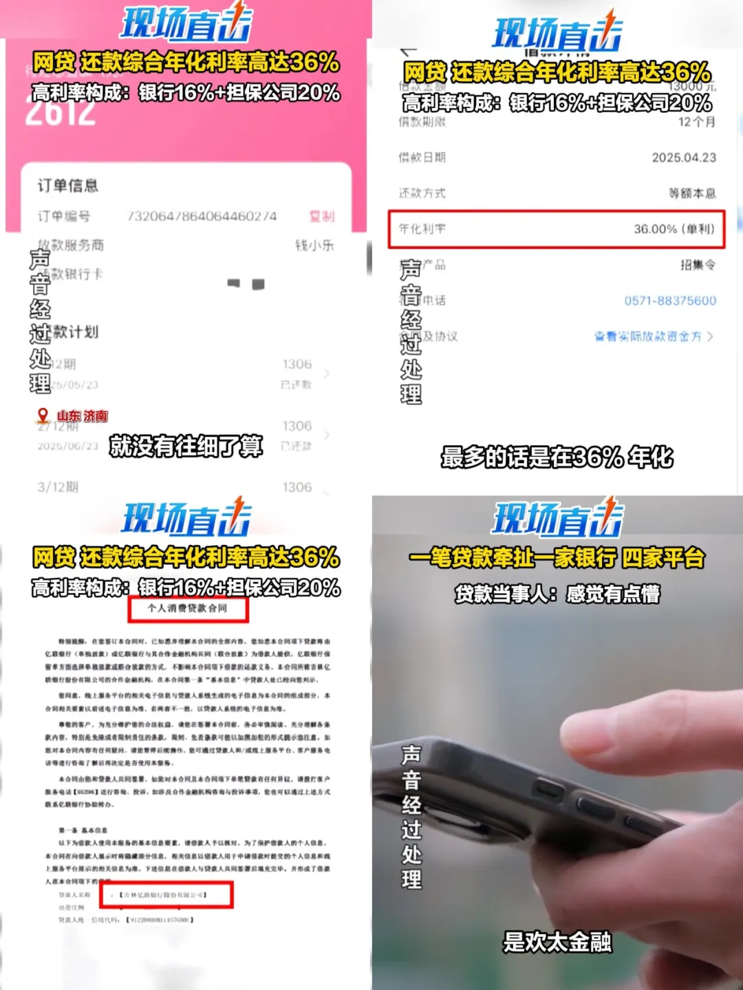 近日,山东电视台齐鲁频道某节目曾公开报道了一则网贷借款新闻,其中便提到了欢太金融。一笔借款牵扯一家银行、四家平台,借款利率高达36%,借款人想要取消贷款却不知道该找谁。