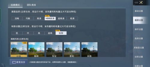 首先我们进行了《和平精英》的测试,在将画面设置为HDR高清+极限帧率的情况下,该机在大约30分钟的游戏中帧率表现非常稳定,整个游戏过程中的开关门、射击、开车、切换视角等场景都非常流畅,没有丝毫的卡顿。