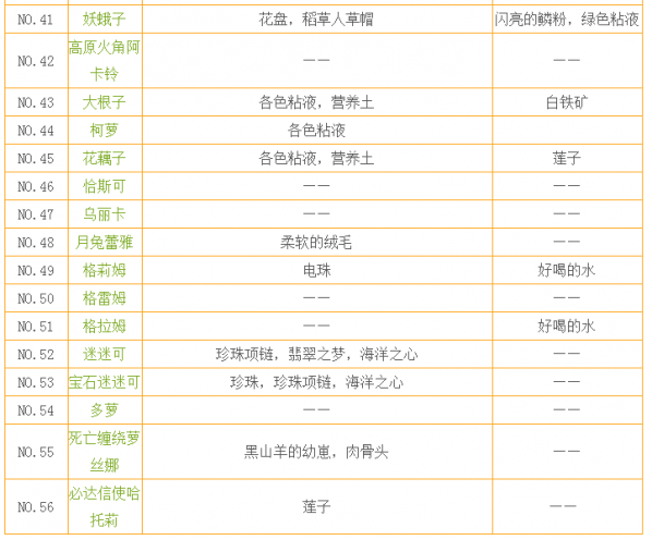 魔物羁绊所需物品汇总