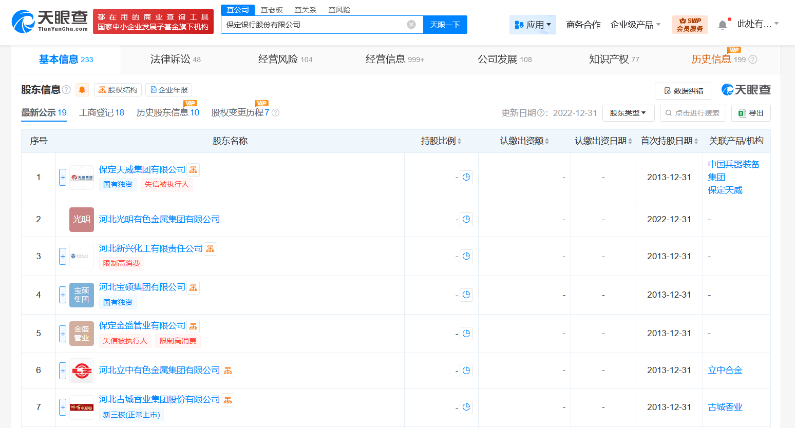 该公司成立于2002年1月,法定代表人为李建树,经营范围含吸收公众存款,发放短期、中期和长期贷款,办理结算业务,办理票据承兑与贴现,发行金融债券,代理发行、代理兑付、承销政府债券,买卖政府债券、金融债券业务等,由保定天威集团有限公司、河北光明有色金属集团有限公司、河北新兴化工有限责任公司等共同持股。