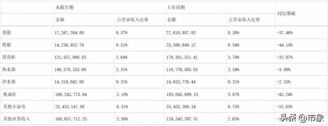 二代任富佳接班后力推的第二品类(一体机、蒸箱、烤箱)与第三品类(洗碗机、净水器、热水器、集成灶、橱柜),在2025年上半年业绩中表现惨淡。除一体机外,其余品类营收全面下滑,其中烤箱与集成灶跌幅更超过44%,令人忧心。