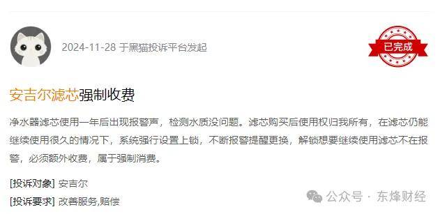 信任危机下的安吉尔净水器:出水现异味,售后拖延,滤芯问题频发快讯