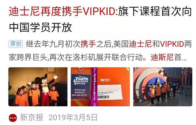 此外,在今年的3月5日又有消息称:迪士尼与VIPKID再度携手,其旗下课程——迪士尼青少年奇妙学习课程首次向中国学员开放,来自中国的近30名VIPKID小学员成为首批深度体验用户。