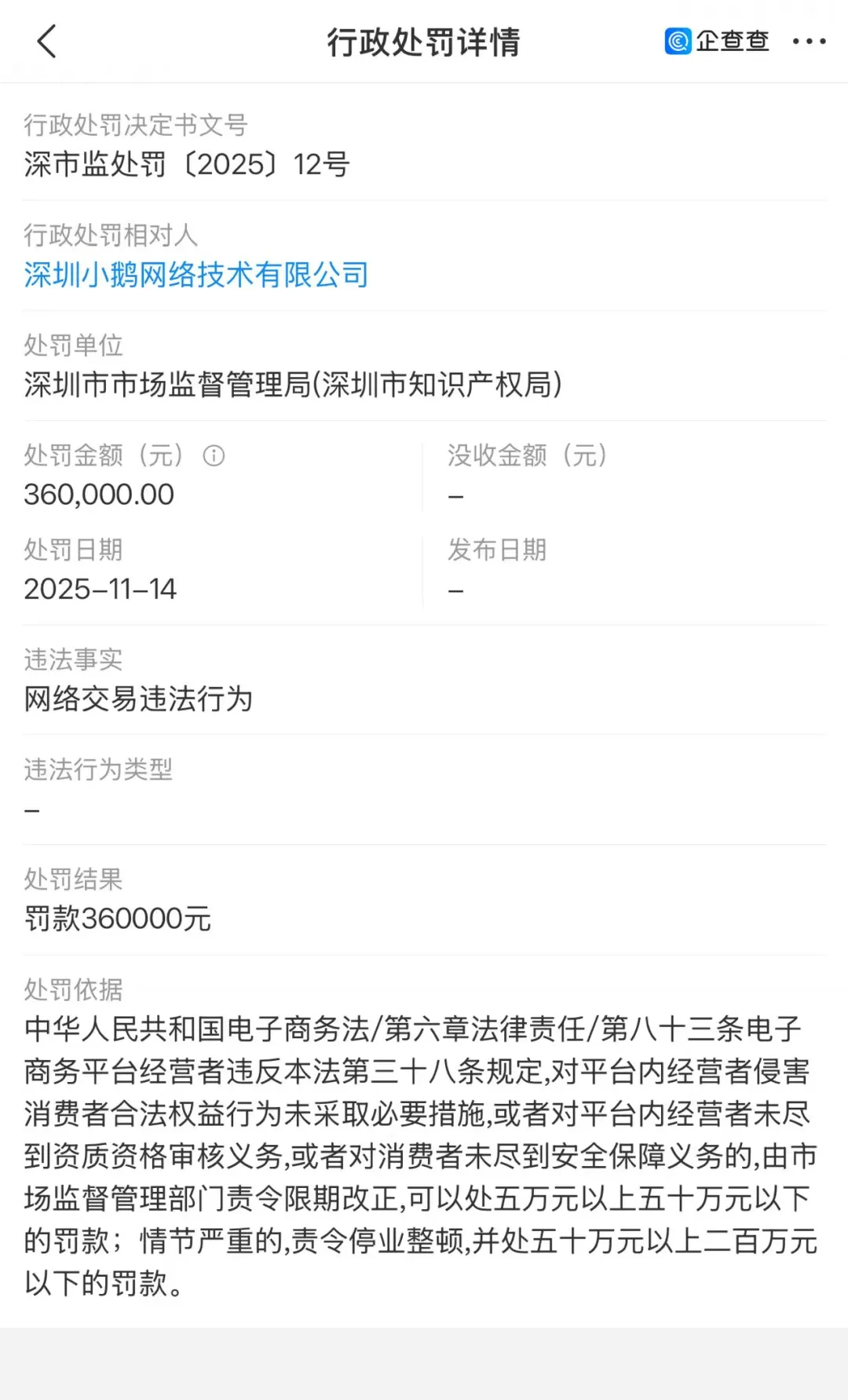 正当深圳小鹅网络技术有限公司(以下简称“小鹅通”)向港股IPO发起冲刺之际,一纸来自深圳市市场监管局的36万元罚单,将其长期存在的平台治理问题推至台前。