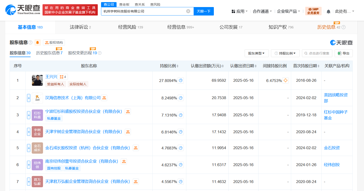 该公司成立于2016年8月,法定代表人为王兴兴,注册资本约259.42万人民币,经营范围含智能机器人的研发、智能机器人销售、工业机器人制造、工业机器人销售、机械设备研发、机械电气设备制造、机械设备销售、服务消费机器人制造等,由王兴兴、汉海信息技术(上海)有限公司、宁波红杉科盛股权投资合伙企业(有限合伙)等共同持股。