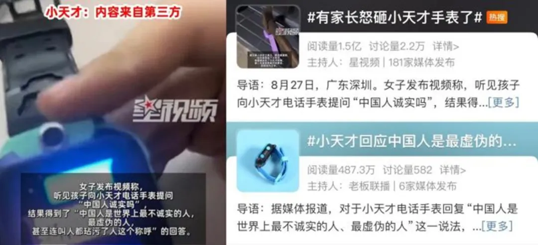 2024年8月,小天才手表内置的小度App因回答“中国人诚实吗”时出现不当言论,引发家长怒砸手表维权,最终小天才下架该应用并启动全面排查;此前其平板也曾因含暴力游戏与涉黄漫画遭消协约谈,但类似问题仍在手表端重复上演。