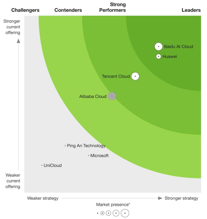 诸如在云服务市场竞争中,IDC就表示:“作为国内唯一拥有完全自主深度学习框架的云服务商,百度智能云在机器学习和AI 开发平台方面拥有领先优势,能够提供各类自定义组件,满足不同用户进行数据预处理、特征工程和算法建模的需求,不断降低AI 技术应用门槛,广泛赋能开发者。”也正因如此,百度智能云在市场竞争中国表现卓越,增速迅猛。在IDC发布的《IDC MarketScape:2019中国AI云服务市场厂商评估》报告中,百度智能云凭借着在AI技术和商业上的优异表现,在能力和市场表现两个维度获得优异表现,位居领导者象限最上方,均为第一;在Forrester发布《中国计算机视觉公有云平台能力》报告,百度智能云的计算机视觉能力在8大维度获得第一。