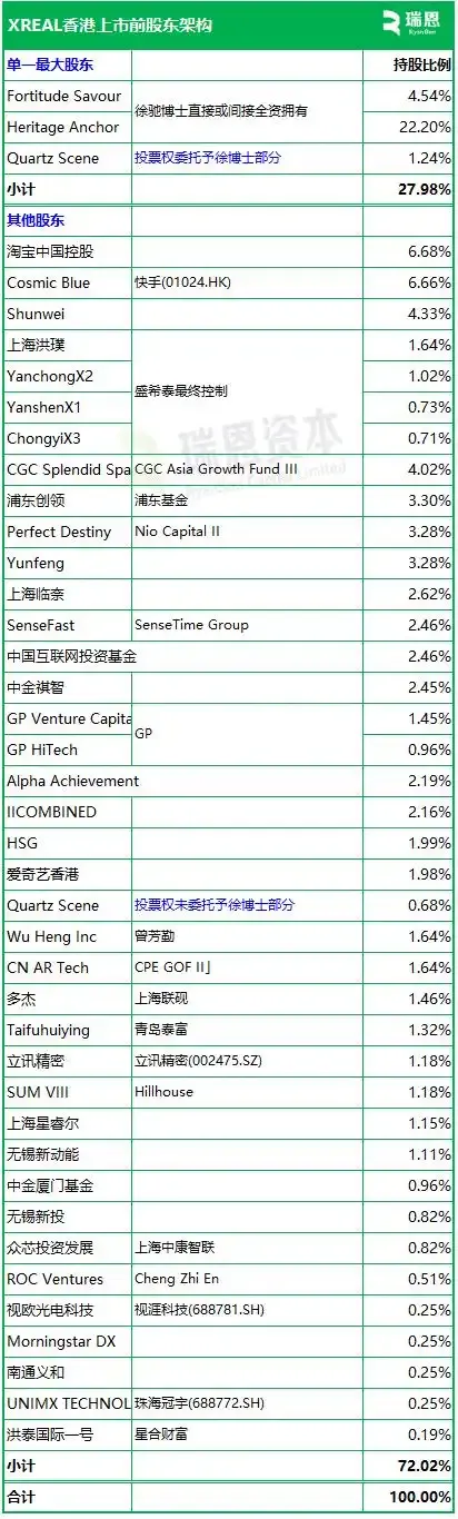 这家成立于2017年、由前英伟达GPU架构师徐驰创立的公司,曾是AR赛道最耀眼的明星——累计融资3.2亿美元(约23亿人民币),股东名单星光熠熠:阿里、快手、红杉、高瓴、顺为、云锋、蔚来资本、立讯精密……几乎集齐互联网与硬科技半壁江山。