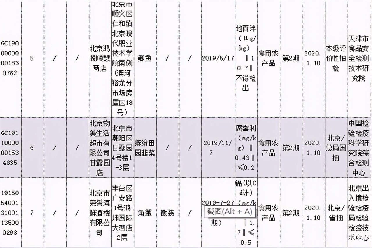 去年1月份,根据今年1月份,据北京市市场监督管理局官网发布公告显示,在抽检的农产品中,北京物美生活超市有限公司甘露园店经营的韭菜,腐霉利不符合食品安全国家标准。据该公告显示,物美在售韭菜腐霉利超标的检验结果由中国检验检疫科学研究院综合检测中心出具。