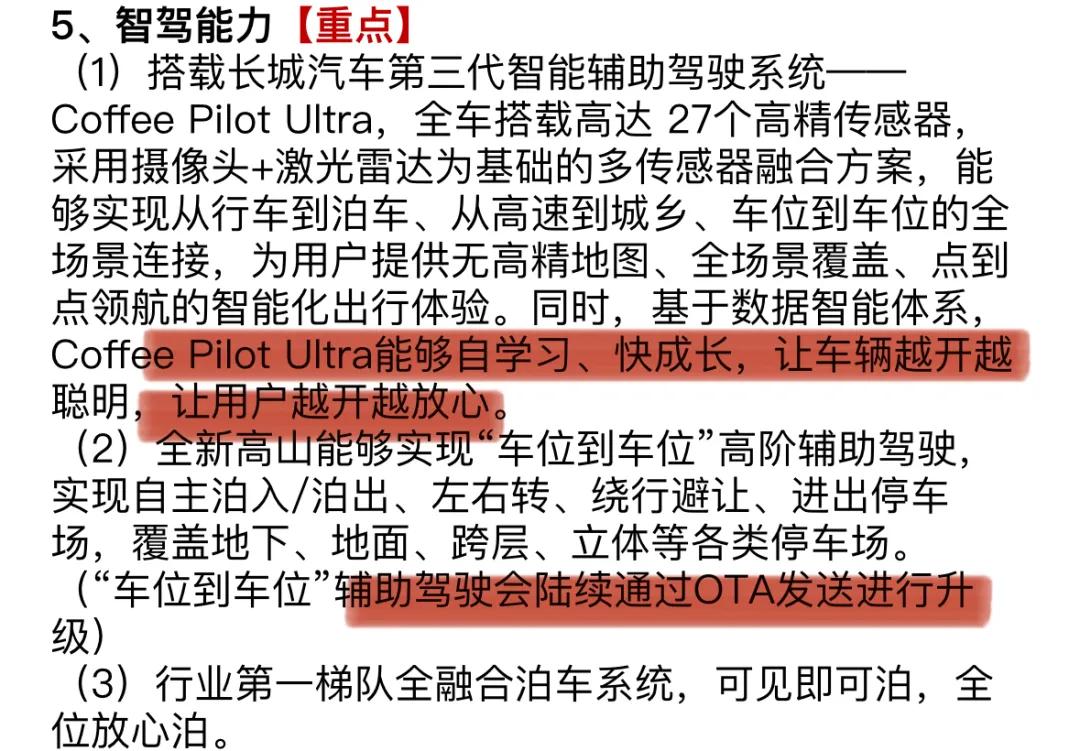 更讽刺的是产品宣传的自相矛盾,按照魏牌的素材,高山搭载的Coffee Pilot Ultra系统“能自学习、快成长,车位到车位辅助驾驶可OTA升级”,堪称“全场景智能天花板”。可转头蓝山就推出“智能进阶版”,明摆着是承认之前的系统不够完善——要么是当初的宣传夸大其词,要么是为了追智能化热度再炒一轮。而魏建军明明多次禁止发布会“吹牛皮”,这种前后矛盾的操作,恰恰打了“求真”的脸。