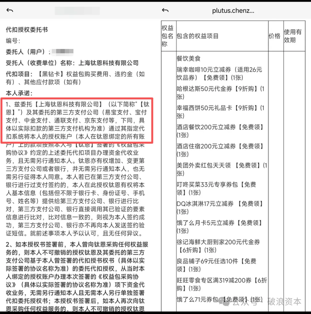 据悉,黑钻卡服务由上海钛恩科技有限公司提供,扣款则通过易宝支付、宝付支付等多家第三方通道完成,其所谓的“权益”多为餐饮、影视券包,本质上是为合作商家引流,与贷款服务无实质关联,却成为平台变相抬升融资成本的工具。