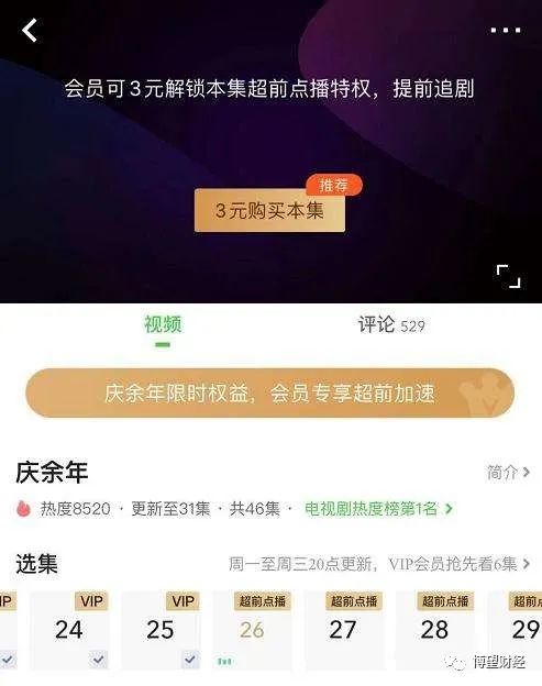 如果说会员付费模式是视频网站们找到的流量变现妙计,那么超前点播无疑就是其为了开辟新利润点打的小算盘。