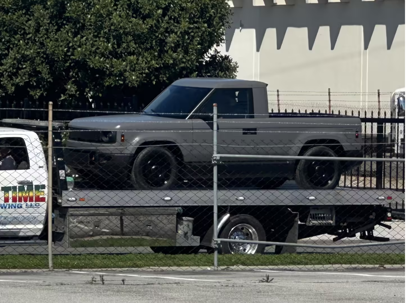 据外媒 TechCrunch 今日报道,Reddit 用户 u / discostranger09 在 r / whatisthiscar 论坛上发布了一张照片,照片显示一辆小巧的深灰色双座皮卡车正被卸下,地点位于其所在办公室外的集装箱旁。