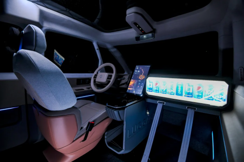 为了让乘坐体验上个台阶”,BM-400采用座椅布局。按照团队设想,这台MPV将符合所有出行需求,无论是轮椅、爱宠、大件行李,都可以满足。 不仅如此,去除副驾驶位后,空出来的前排位置还可以安装自动贩卖机。