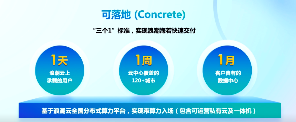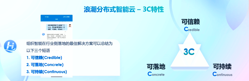 针对此,浪潮云打造具备3C特性的“分布式智能云”,即可信赖(Credible)、可落地(Concrete)、可持续(Continuous),助力企业用户高效落地智能应用。