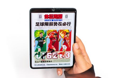 对于80后来说,虽然现在的新闻阅读更加方便,诸如今日头条之类的聚合类新闻软件也很普及,但毕竟是看着报刊杂志的,习惯的养成真的很难改变。安卓系统上有许多不错的看电子版传统报刊的软件,比如读览天下等,而一些畅销的报刊杂志也推出了专用的APP提供订阅,比如体坛周报和游戏机实用技术等。虽然GalaxyFold的屏幕面对报刊杂志来说还是略小了一点,不过捧在手上看,感受还是很不错的。那种图文混排的布局,讲究的排版,比起瀑布流的今日头条要有感觉的多。当然,如果碰到感兴趣的文章,双指放大还是不可避免的。