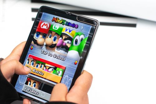 展开后的三星GalaxyFold那块接近4:3的屏幕比例,完全匹配了当年那些主机游戏的画面。在横屏显示时,各类主机游戏 不仅可以全屏显示,更拥有极高的视觉冲击力。而在模拟诸如NDS、3DS等双屏机型时,竖屏显示,三星GalaxyFold也能展现出远超普通智能手机的显示效果。如果搭配一个外接蓝牙手柄,移动的怀旧游戏库也不在话下。