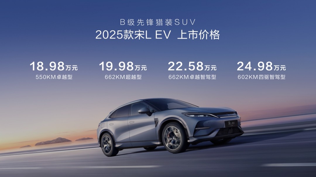 智驾全面升级 2025款比亚迪宋L EV上市:18.98万元起快讯