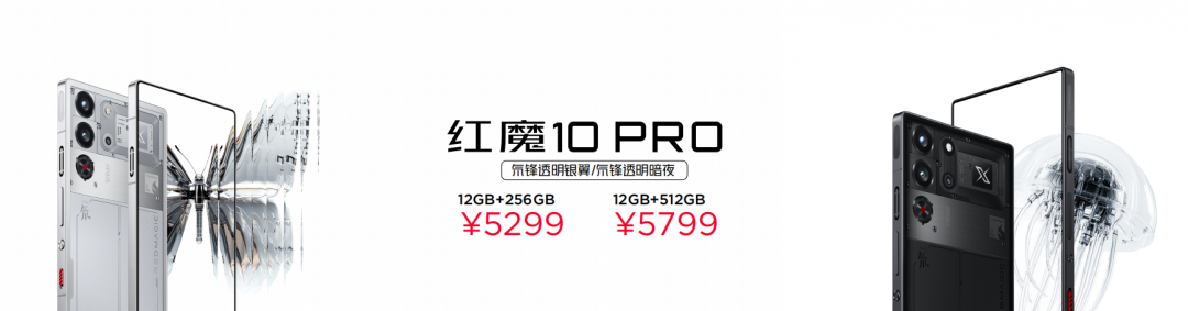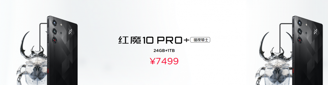 红魔10 Pro+暗夜骑士/白昼武士,16+512G售价5999元;红魔10 Pro+氘峰透明银翼/氘峰透明暗夜,16+512G售价6299元;红魔10 Pro+暗夜骑士24+1T售价7499元。
