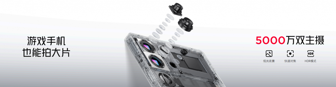 性能极致出色,影像能力也毫不逊色,红魔10 Pro系列影像再度升级。后置两颗5000万像素主摄,支持低光夜景、快速对焦和HDR模式,前置1600万像素AI屏下摄像头,通过屏下技术升级和AI算法的加持,轻松拍摄出色彩真实、细节丰富的高质量照片,新增AI相册搜索和AI消除功能等实用功能,极大提升影像处理效率和体验。