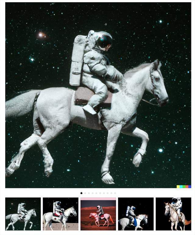 (DALL-E以“骑马、宇航员”为关键词创作的绘画)