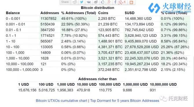 比特币地址中,前三排地址数量庞大,但也只占BTC总量的85%左右,而后三排只有0.01%左右的地址就占据了40%的财富。太过现实的真相告诉我们,比特币中大约40%的财富,掌握在了1744个人的手里。如果这些鲸鱼中的一部分人开始抛售大量BTC,那么市场将面临无法控制的局面。这也是各家财经都在监测比特币富豪榜中交易去向的原因。
