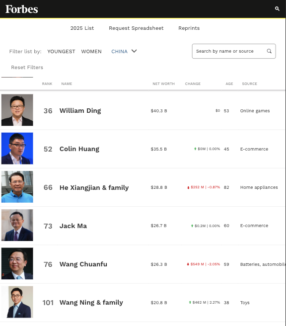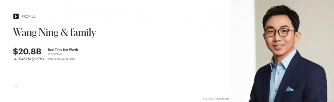 泡泡玛特2024年年报显示,王宁持有公司股权占比为48.73%。随着泡泡玛特股价持续大涨,王宁身家也水涨船高。6月9日上午福布斯实时富豪榜显示,王宁身家为208亿美元,跻身中国榜第十。