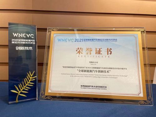 图示:特斯拉公司“优化热源的电动汽车热泵技术”在2021全球新能源汽车前沿及创新技术评选中被评为“全球新能源汽车创新技术”