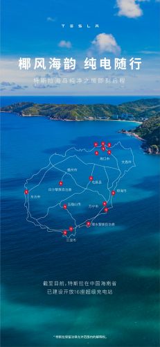 会场内,特斯拉公司首席执行官埃隆·马斯克先生点赞中国新能源汽车市场并发表精彩视频演讲,收获了在场千名与会者的强烈关注;会场外,特斯拉进一步拓展海南全省超级充电网络布局,充电体验再升级,让热爱旅游自驾的车友们,出行无忧,为纯美海南岛的蓝天碧海再添清洁源动力。