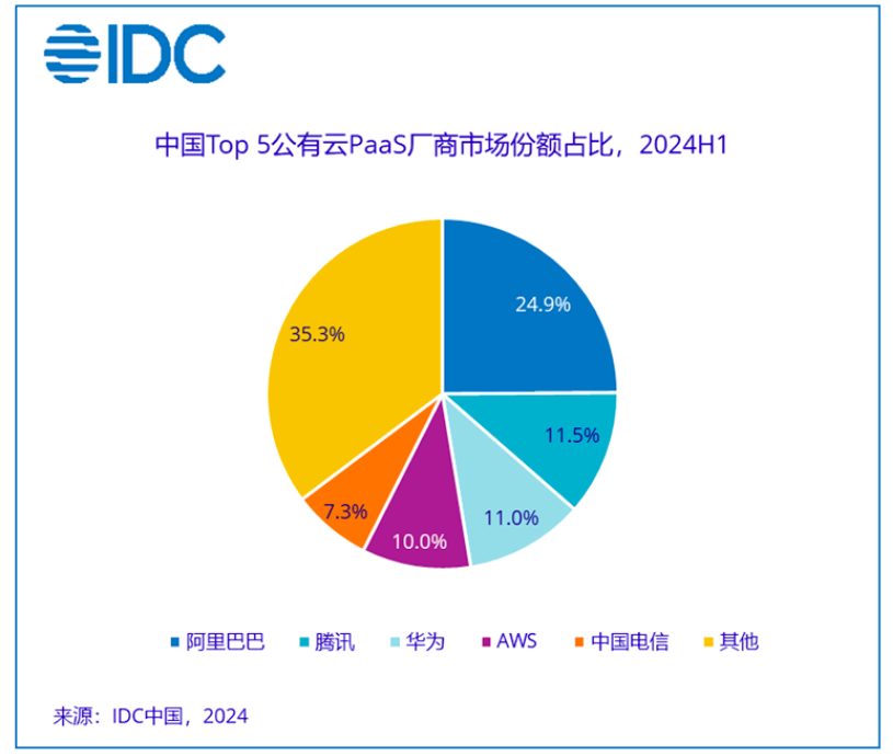 IDC:2024上半年中国PaaS市场阿里巴巴、腾讯、华为、AWS、中国电信居前五快讯