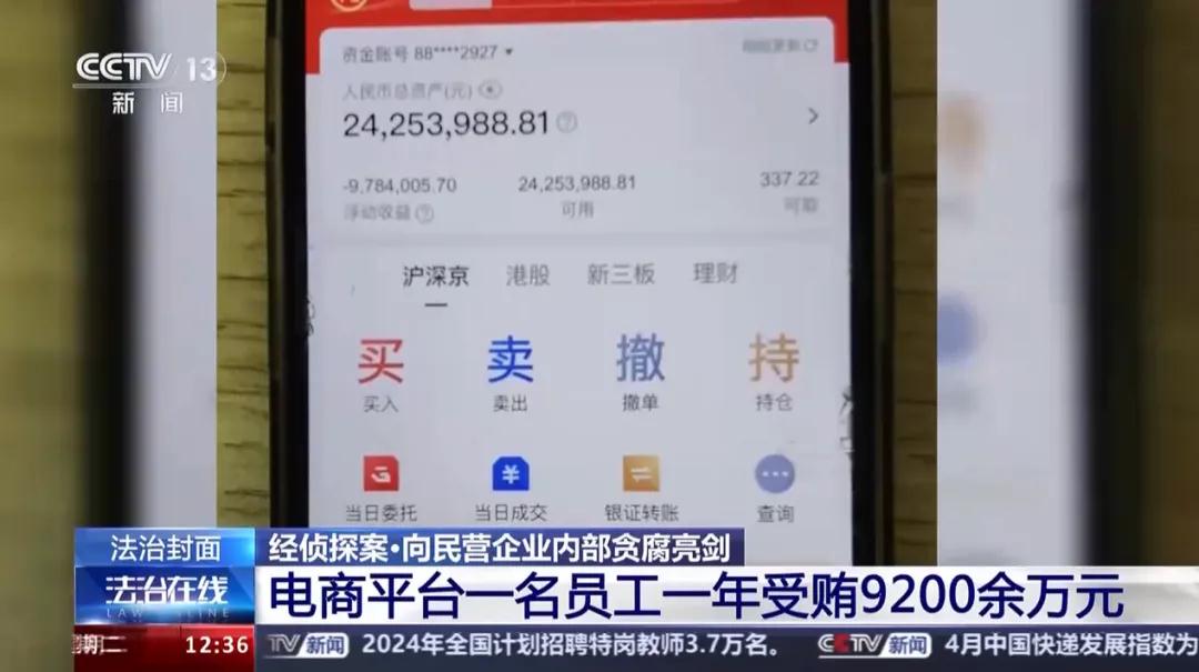 就在今年上半年,杭州警方成功揭开了阿里内部的一起贪腐案件。涉案嫌疑人王某在短短一年间,竟非法收受商家贿赂高达9200余万元。