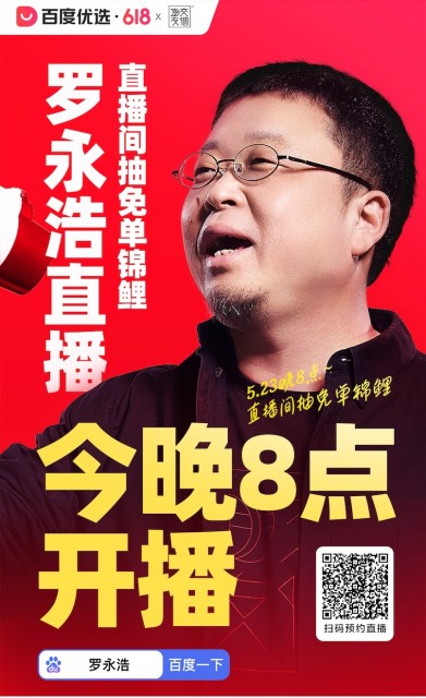 罗永浩今晚8点在百度优选开启直播首秀快讯