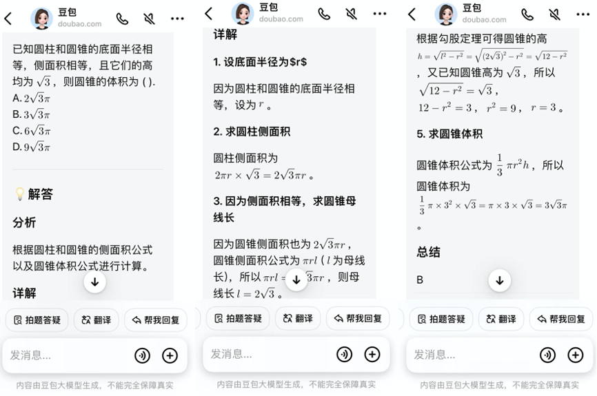 下面附上各AI产品的具体答题情况: