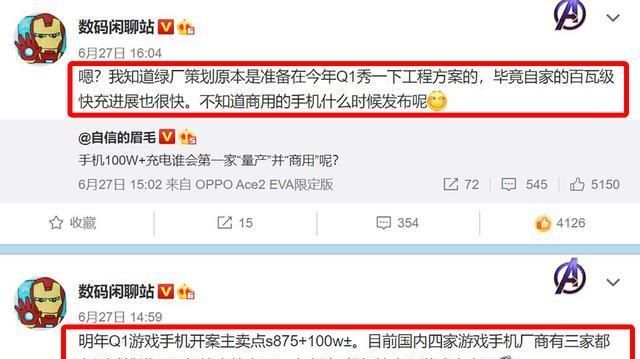 可能大家都觉得联想这个90W快充有些太夸张了,担心是不是真的。首先要明确一点,这是真正的90W快充,并且后面还有比它功率更大的快充。去年小米高管曾透露过小米实验室已完成100W功率的充电测试,并且会在今年商用。日前,又有博主爆料称,小米可能会全球首发100W有线超级快充技术,最快可能会在年底之前亮相,17分钟即可充满4000毫安的电池。