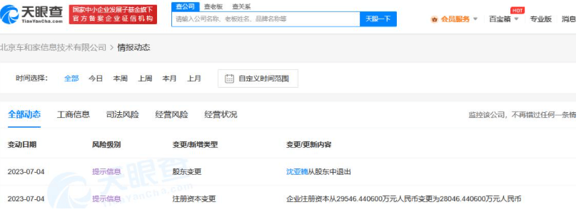 天眼查App显示,7月3日,理想汽车关联公司北京车和家信息技术有限公司发生工商变更,理想汽车联合创始人沈亚楠退出股东行列。同时,该公司注册资本由约2.95亿人民币减至约2.8亿人民币。