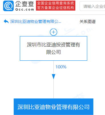 物业管理投资等,由深圳市比亚迪投资管理有限公司100%控股,【TechWeb】企查查APP显示。